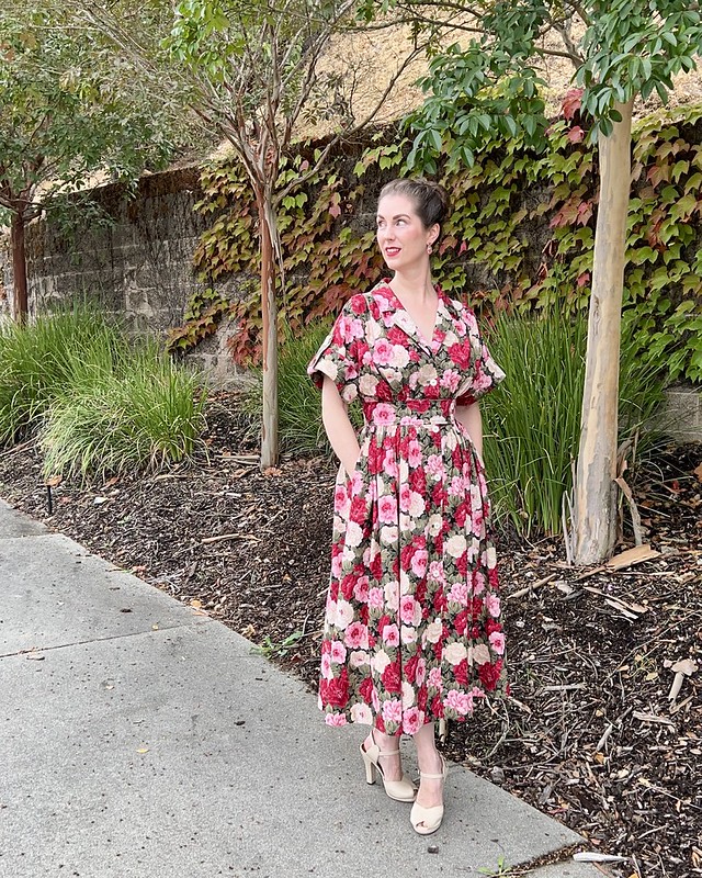 I find it very difficult to resist a floral print. And having a large amount of yardage of one of said floral prints is my idea of sewing heaven because there are no limits to the kind of dress that I can make.